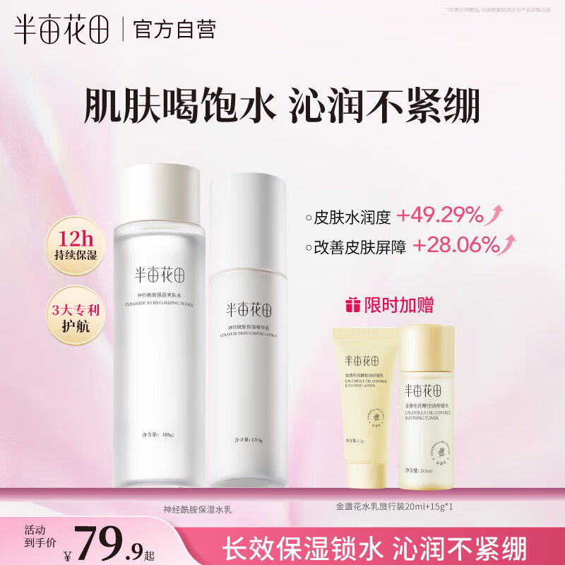 半亩花田神经酰胺水乳套装补水保湿盈润舒缓护肤品化妆品男女士水乳2件套