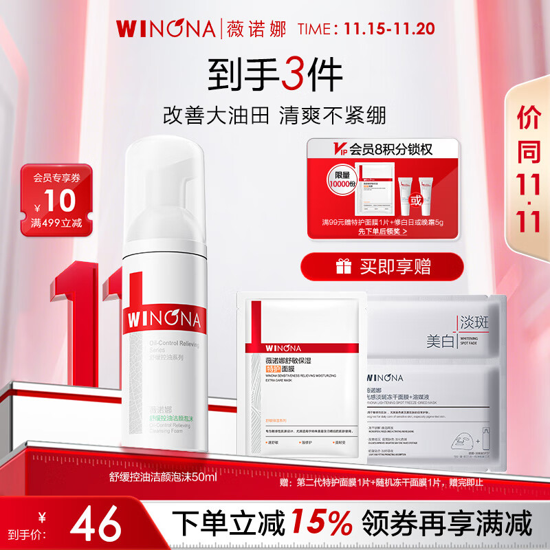 薇诺娜舒缓控油洁颜泡沫50ml保湿温和洗面奶男女护肤品