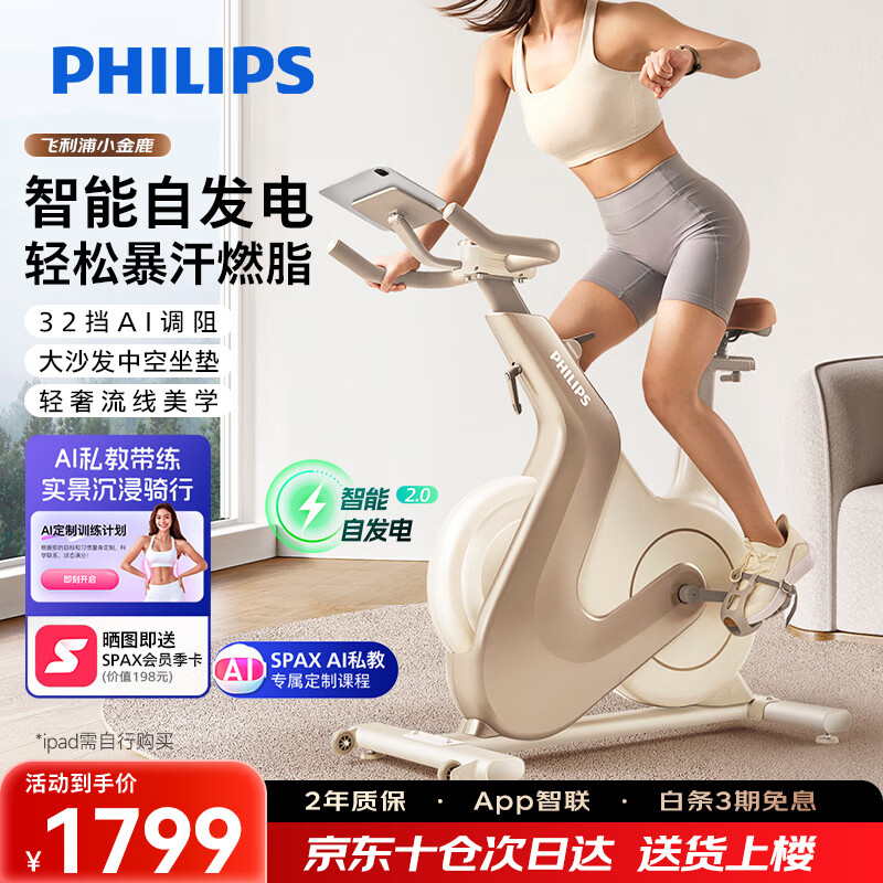飞利浦家用动感单车智能自发电健身器材减肥运动室内自行车小金鹿3102B