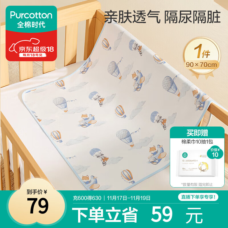 全棉时代婴儿针织复合隔尿垫纯棉可洗防水透气床单加大 飞行日记90×70cm