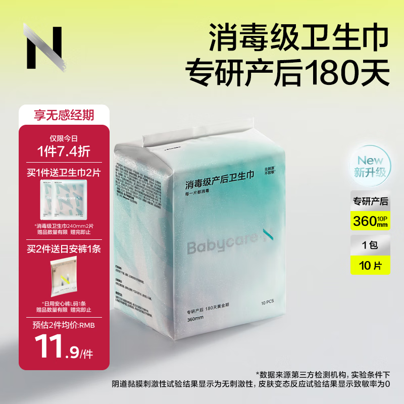 babycare消毒级产妇卫生巾孕妇产褥期恶露加长加宽京东自营旗舰360mm10片