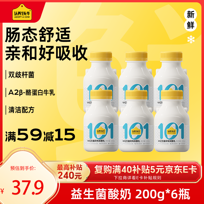 认养一头牛益生菌酸奶 双歧杆菌a2β酪蛋白 风味发酵乳200g*6瓶