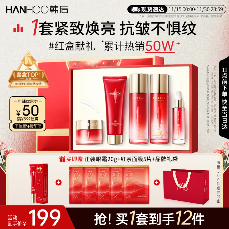 韩后红石榴红茶酵素水乳套装紧致淡纹抗皱化妆品护肤品全套礼盒送妈妈