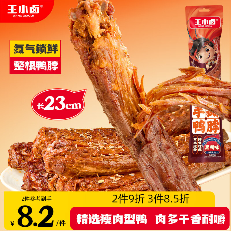 王小卤手撕风干烤鸭脖整根休闲卤味鸭货零食独立氮气包装黑鸭味65g