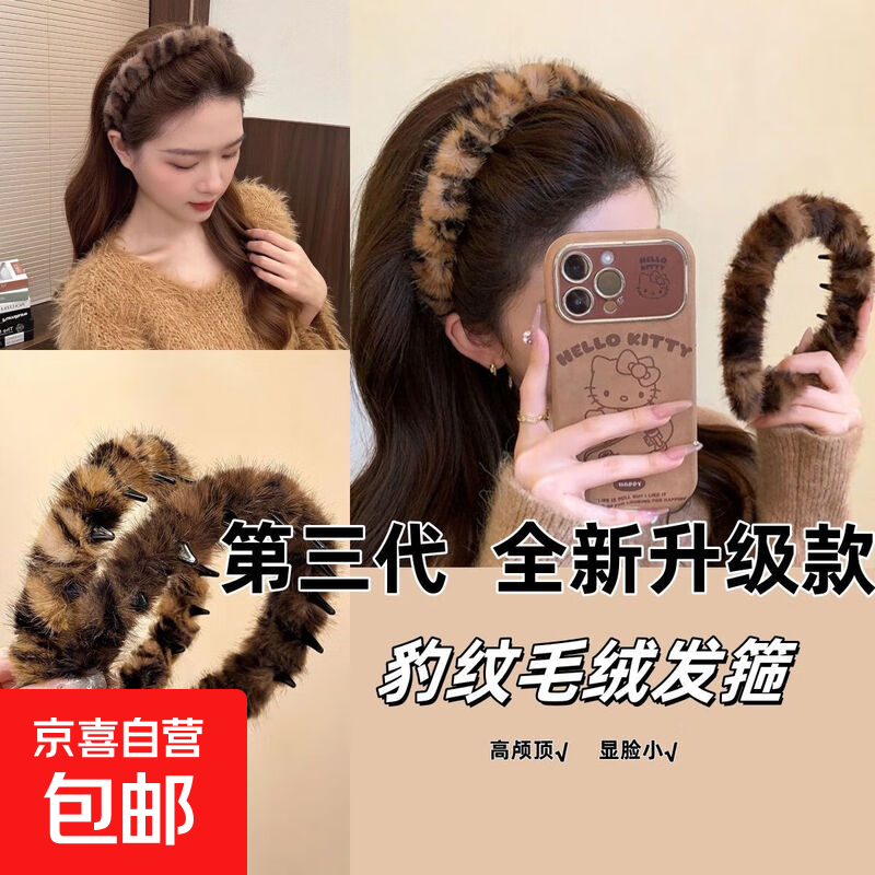 美发工具复古豹纹带齿毛绒发箍女洗脸化妆防滑2025新款秋冬头饰 1#浅色+深色【2件套】