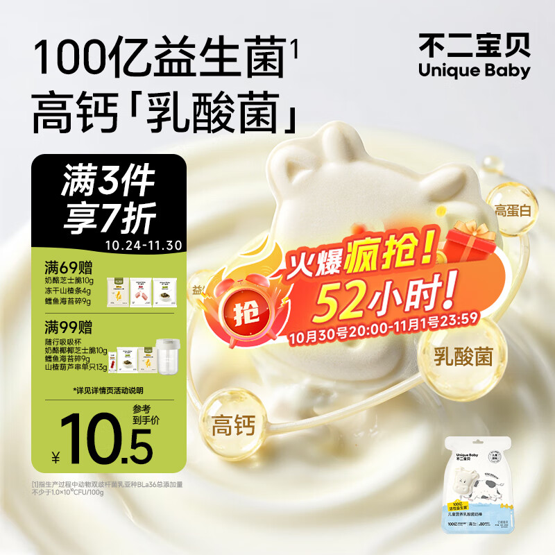 不二宝贝高钙牛奶棒棒糖牛乳奶片奶贝搭婴儿幼儿童无添加无糖宝宝零食36g