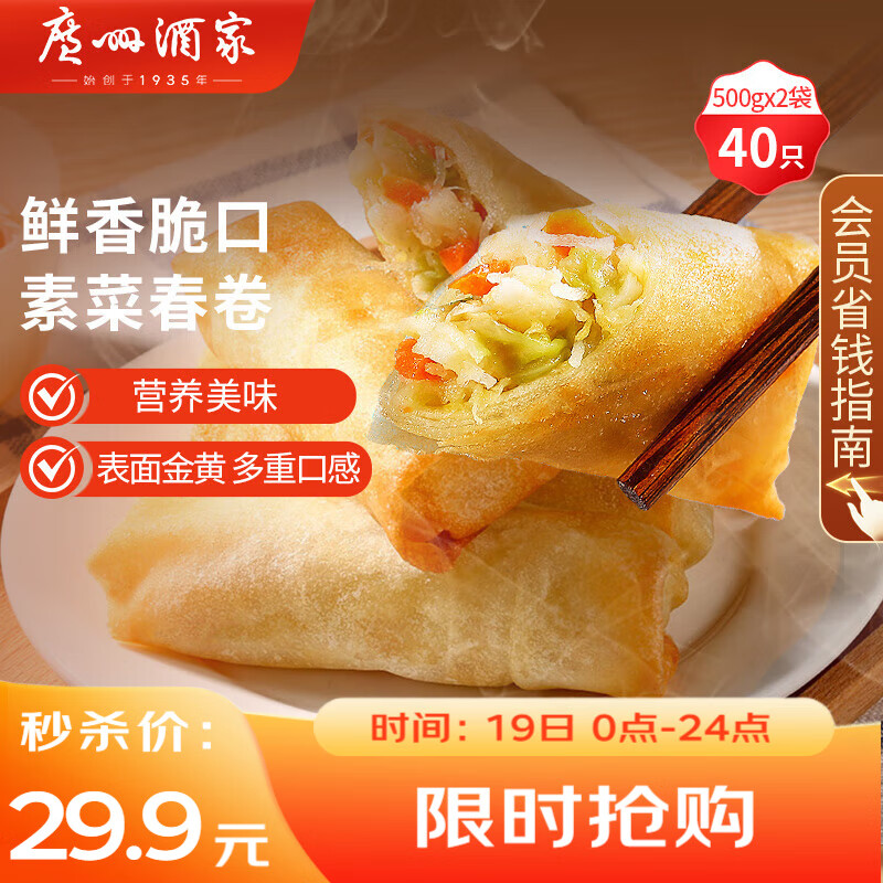 广州酒家利口福 素菜春卷 500g*2袋 40个 儿童早餐 早茶点心 春饼小食 家庭装
