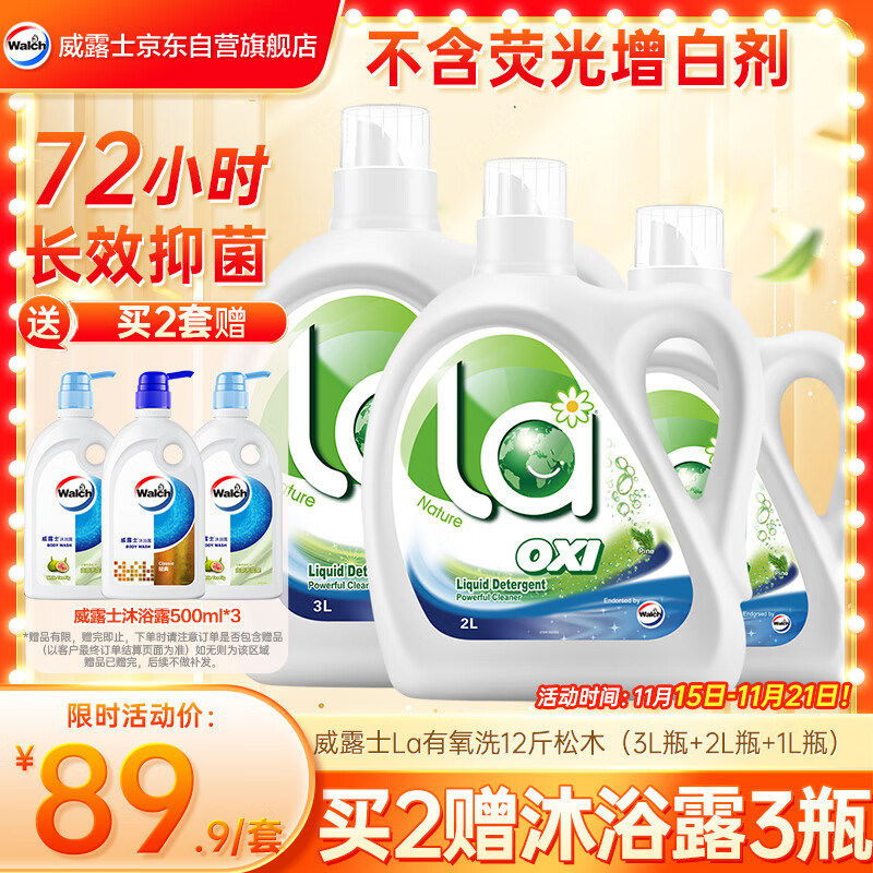 威露士la有氧洗衣液松木香12斤全瓶组合装(3L+2L+1L) 除菌除螨除霉味