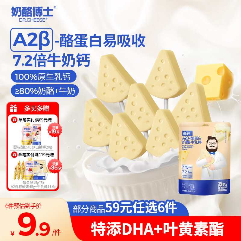 奶酪博士高钙A2β-酪蛋白牛乳棒棒糖40.6g 奶酪棒宝宝儿童零食热门商品