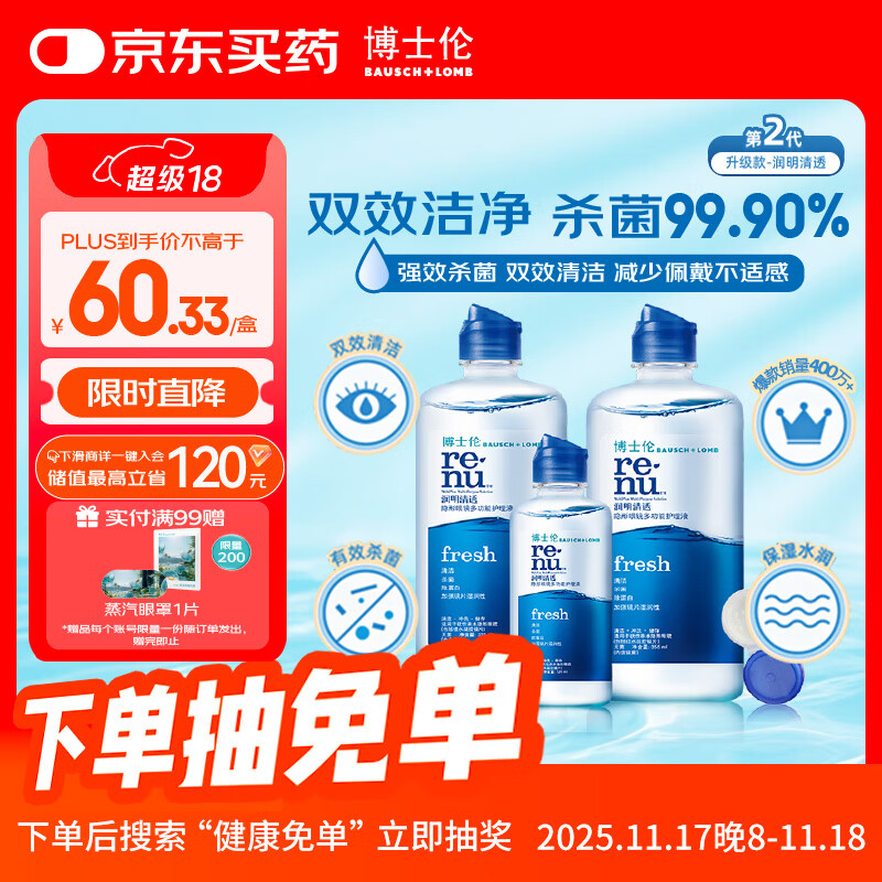 博士伦润明清透 隐形眼镜水护理液830ml 隐形眼镜多功能护理液