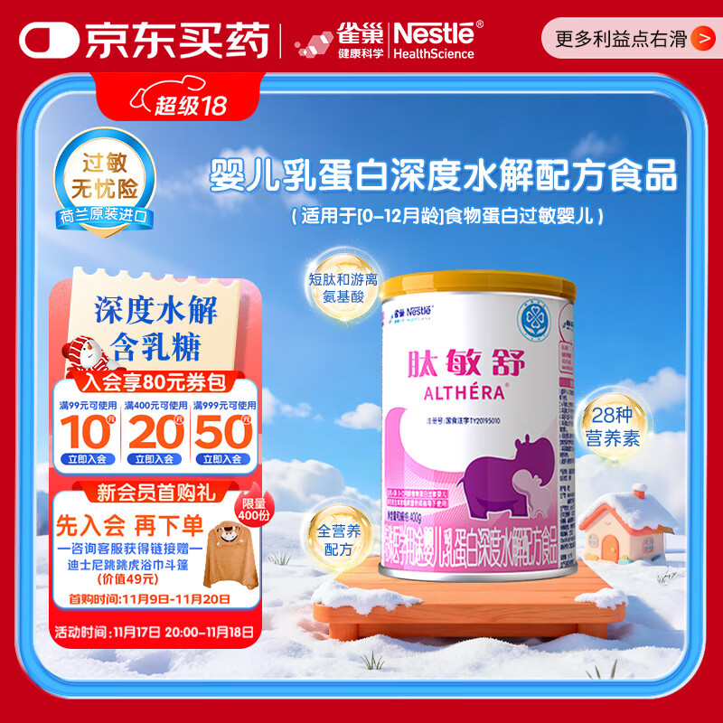 雀巢健康科学肽敏舒 含乳糖 乳蛋白深度水解配方粉 0-12月适用 正品保证 400g