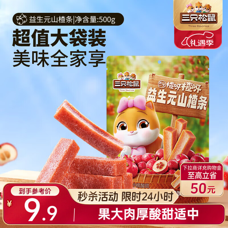 三只松鼠益生元山楂条500g 无添加儿童办公室蜜饯果干休闲零食