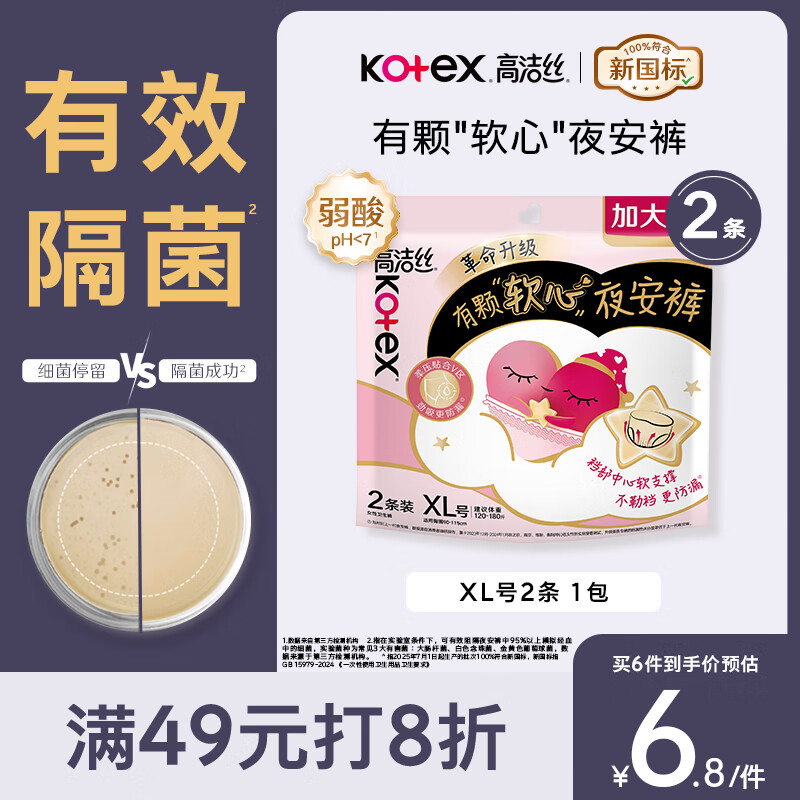 高洁丝【有效隔菌】软心夜安裤XL号2条120-180斤裤型卫生巾安睡裤自营