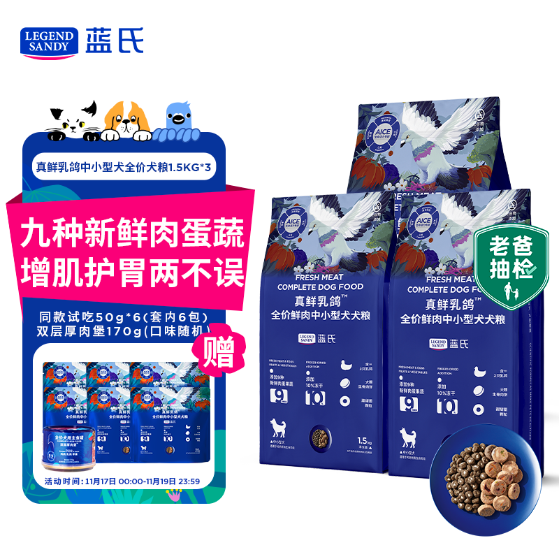 LEGENDSANDY蓝氏狗粮真鲜乳鸽中小型犬泰迪比熊生骨肉冻干鲜肉犬粮4.5kg9斤