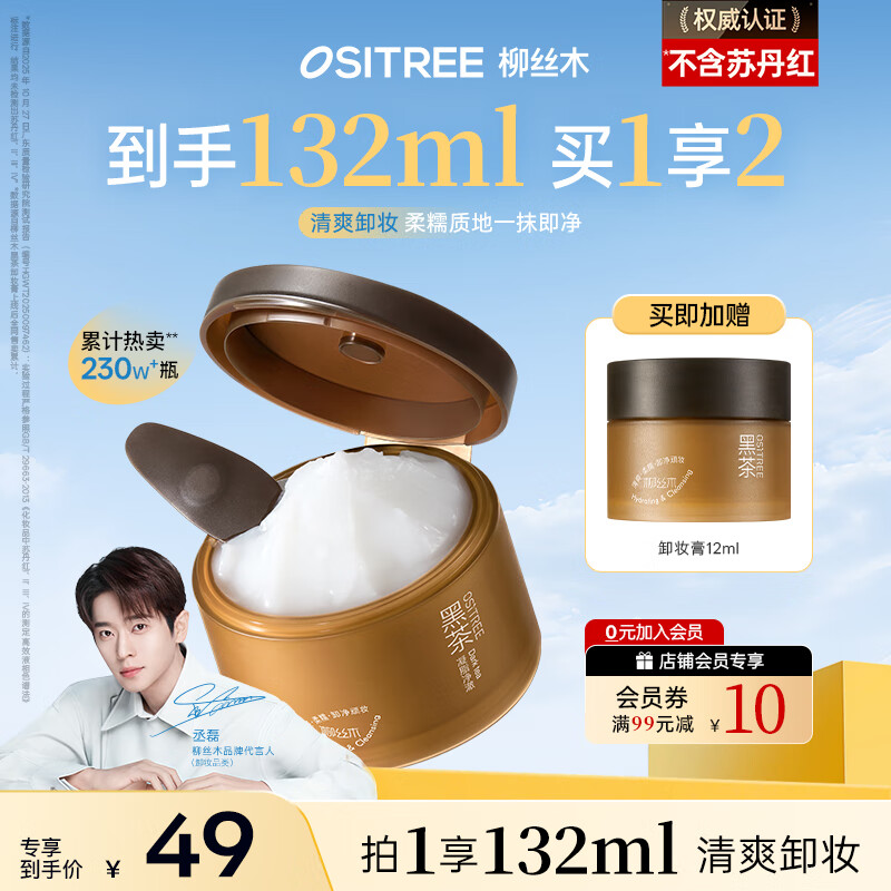 柳丝木(Ositree)黑茶凝脂净澈卸妆膏脸部眼唇卸三合一温和易乳化卸妆油礼物 120ml