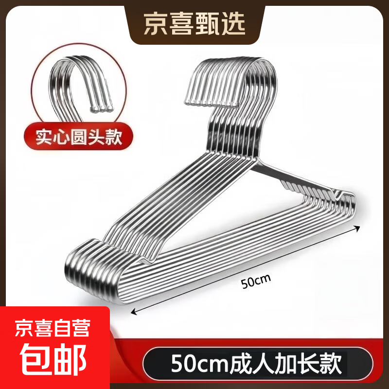 特粗不锈钢挂衣架成人学生宿舍晾衣服架家用实心无痕防滑衣架 50cm【极粗款4.0mm】10个装