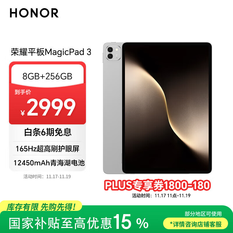 荣耀平板MagicPad 3【国家补贴】13.3英寸 165Hz超高刷护眼屏 12450mAh青海湖电池 8GB+256GB 星空灰