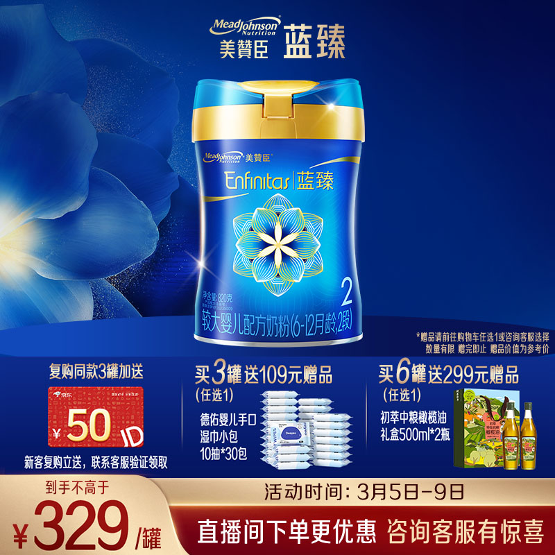 美赞臣蓝臻2段奶粉较大婴儿配方奶粉(6-12月)820g*1罐 乳铁蛋白