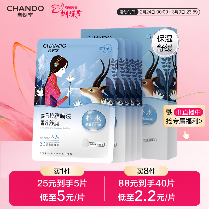 自然堂雪莲舒缓保湿面膜26ml*5 补水保湿滋润 敏肌可用女神节礼物