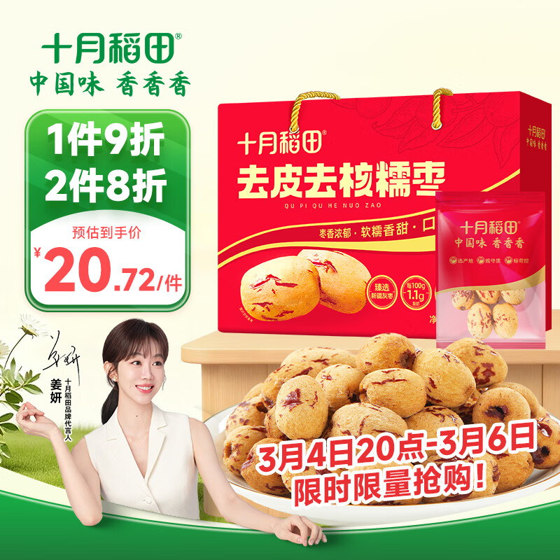 十月稻田 去皮去核灰枣 500g 新疆 软糯香甜 礼盒 独立小包 八宝粥 年货