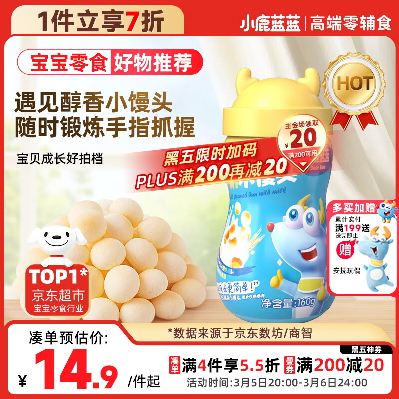 小鹿蓝蓝牛奶小馒头 宝宝儿童零食溶溶豆饼干易吞咽宝宝饼干磨牙糕点160g