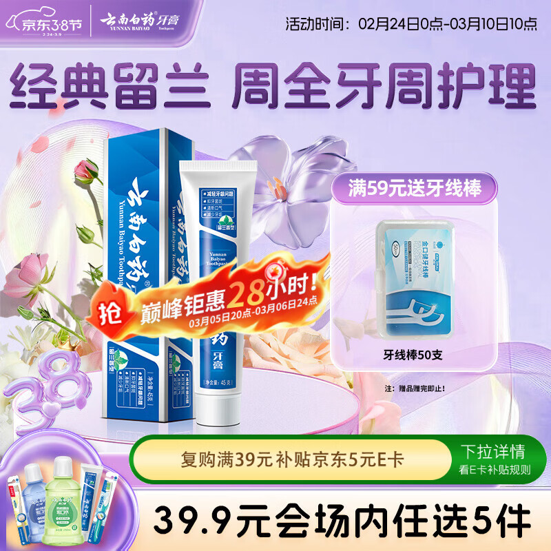 云南白药【39.9元选5件】经典系列牙膏改善牙龈问题留兰香型便携牙膏45g