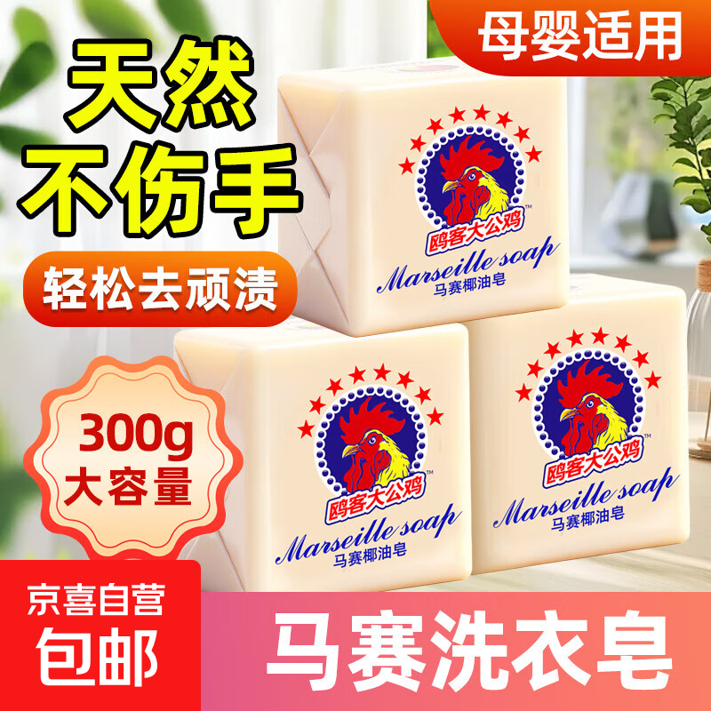 公鸡头洗衣皂肥皂300g强力去污衣物内衣皂【新老包装随机发货】 白色 300g*3块