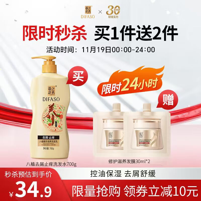 蒂花之秀 DIFASO洗发水八植精华调养洗发乳700g去屑止痒蓬松控油持久留香洗发露