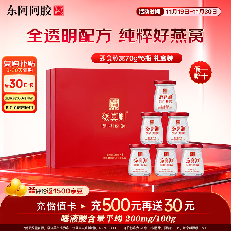 东阿阿胶 花少好营养 即食燕窝70g*6瓶礼盒装 送孕妇长辈滋补营养品