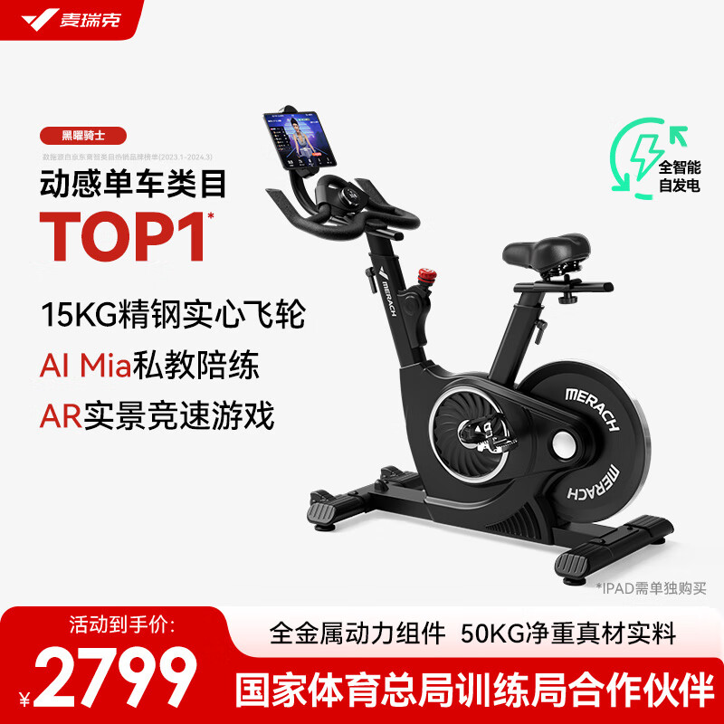 麦瑞克(MERACH)动感单车健身房级家用智能磁控运动器材自行车 黑曜骑士 MR-S12B3