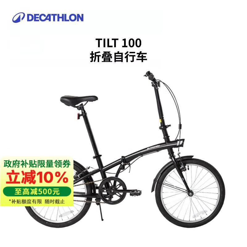 迪卡侬自行车T100折叠自行车折叠便携实用城市通勤单车20寸-2430961
