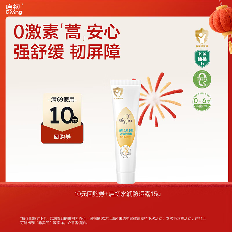 启初水润防晒露 SPF40 PA++ 15g(体验装)
