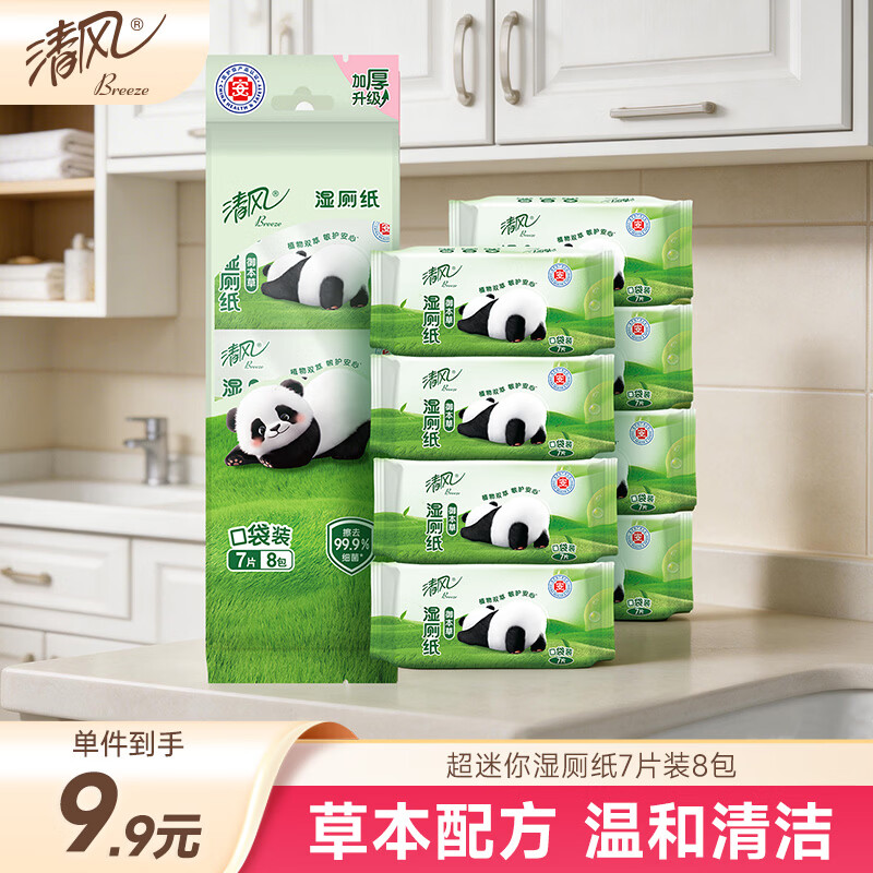 清风超迷你湿厕纸7片*8包56片小巧便携装湿巾 厕纸 医护认证