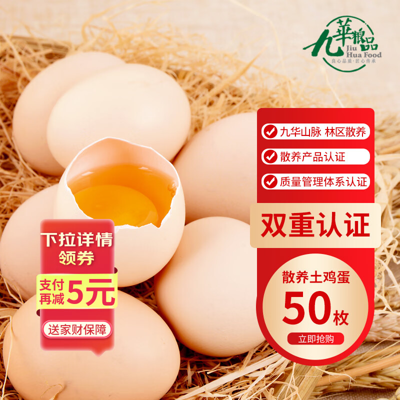 九華粮品散养土鸡蛋50枚 净重3.8斤 新鲜草鸡蛋 月子蛋 宝宝蛋