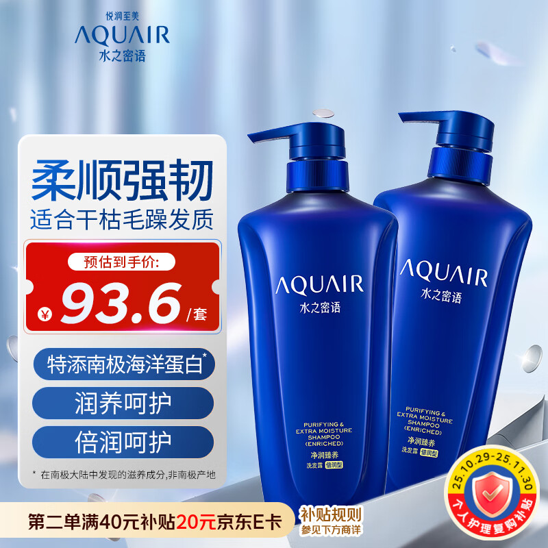 水之密语(AQUAIR)净润臻养(倍润型)洗发水套装600ml*2男女滋养柔顺