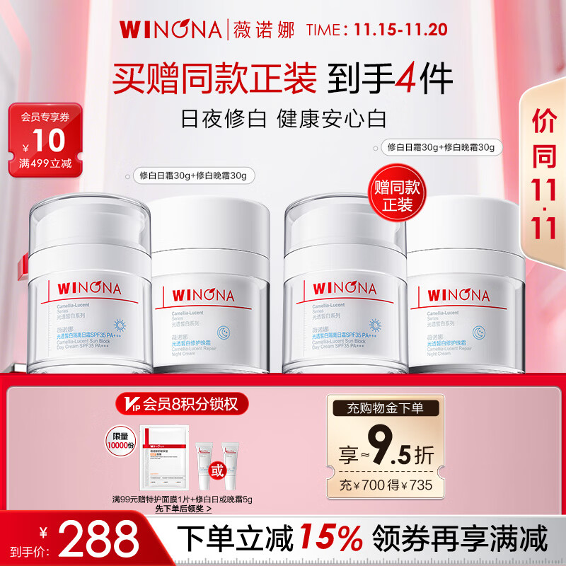 薇诺娜光透皙白套装日霜30g+晚霜30g美白补水保湿乳液面霜护肤品