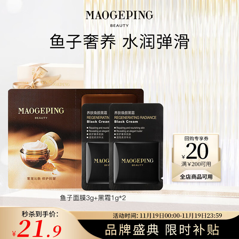 毛戈平养肤黑霜2g+鱼子面膜3g试用装修护保湿抗皱紧致生日礼物