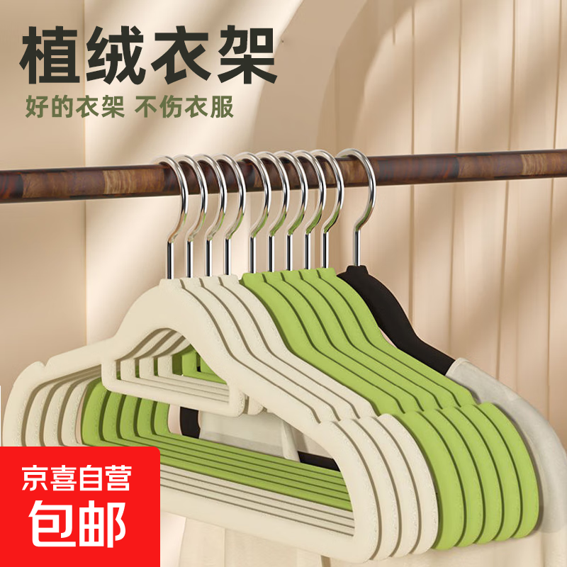 植绒衣架整理师专用防滑无痕成人晾衣架防肩角衣柜收纳衣挂 随机色 10支