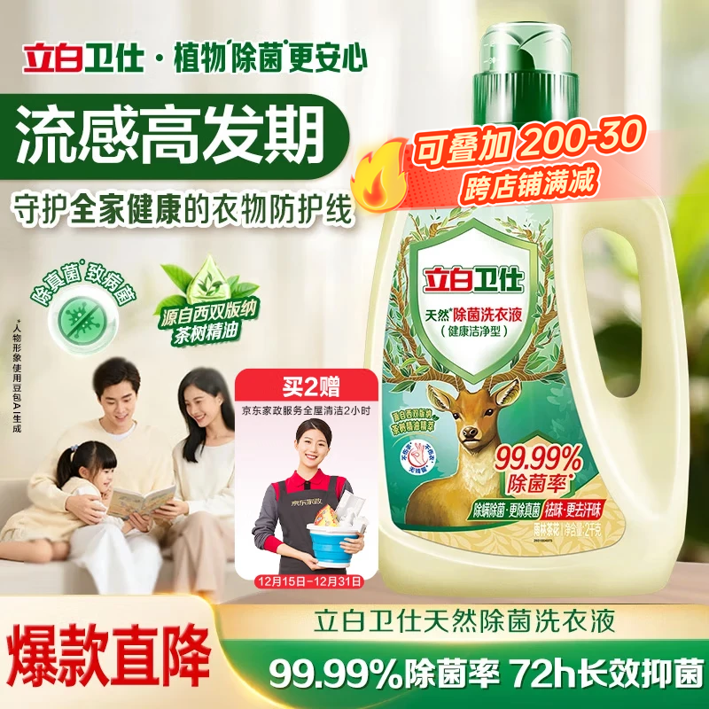 立白卫仕天然除菌洗衣液4斤瓶装 去汗味 除菌率99.99% 72小时长效抑菌