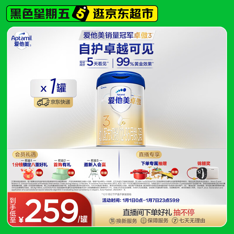 爱他美(Aptamil)卓傲幼儿配方奶粉3段(12—36月龄) 800g*1罐 卓傲自护益生元