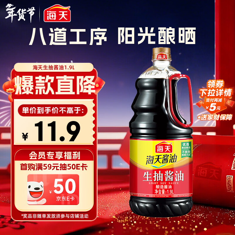 海天 生抽酱油1.9L 【酿造酱油】经典系列 原粒黄豆点蘸提鲜凉拌
