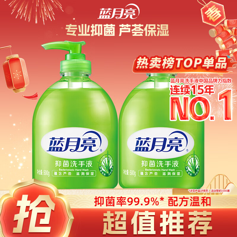 蓝月亮洗手液泡沫丰富滋润芦荟抑菌99.9%500g+补充500g勤洗手防甲流感冒