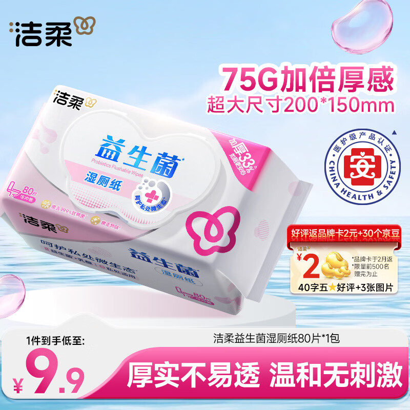 洁柔湿厕纸益生菌80抽加厚厕纸湿巾厕纸 湿巾呵护女性私处 校园必备