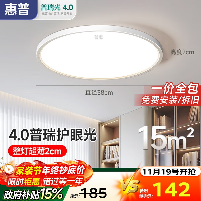 惠普护眼led卧室吸顶灯超薄超亮儿童房书房灯中山灯具包安装