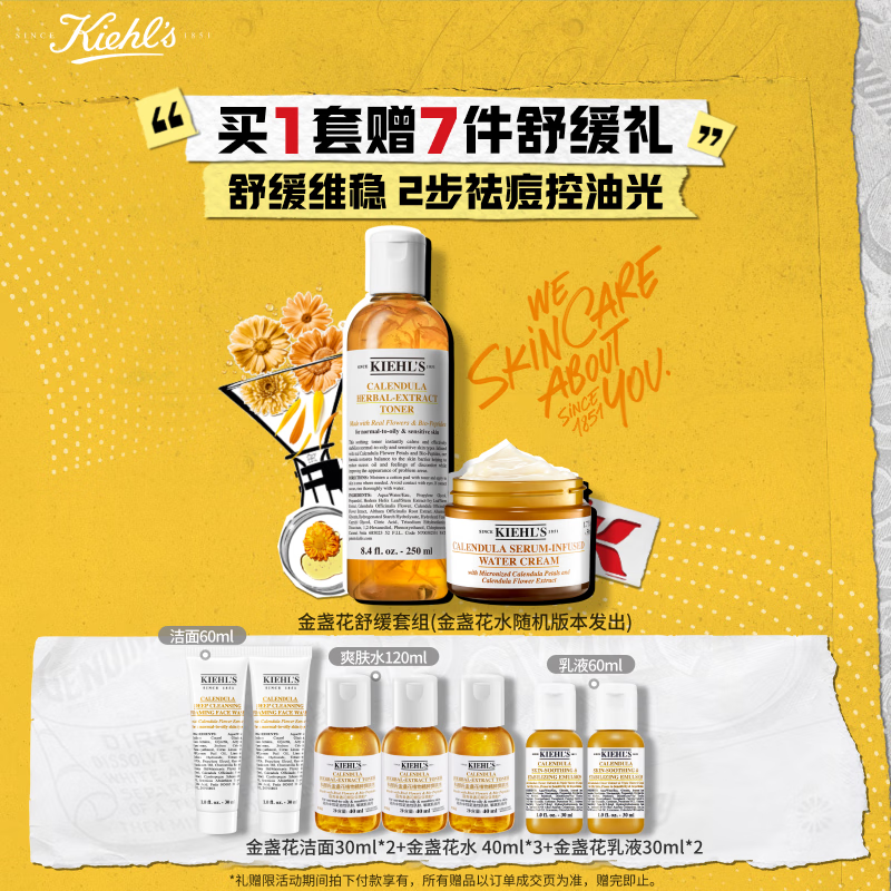 科颜氏(Kiehl's)金盏花水乳套装(水250ml+霜50ml) 舒缓护肤品 生日礼物