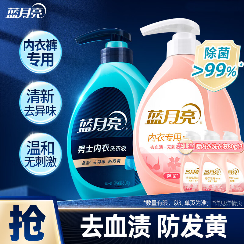 蓝月亮男女士内衣清洗液内衣洗衣液500g*2 去血渍防发黄 除菌>99%