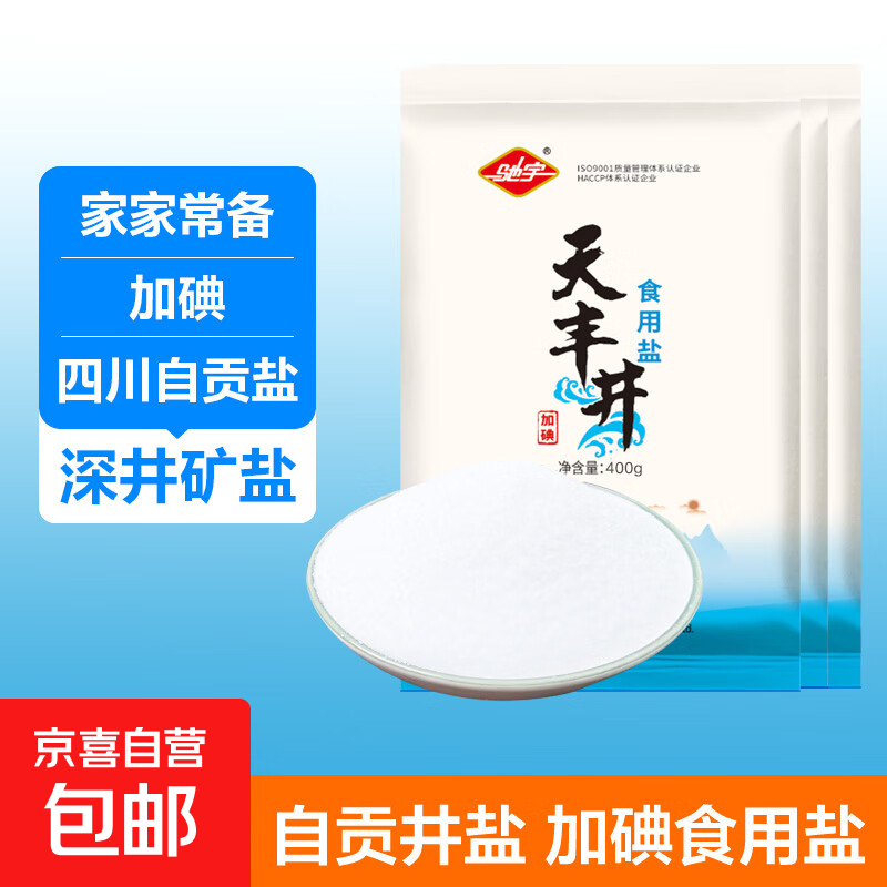 自贡井矿食用盐 加碘盐深井盐矿盐商用食盐家用炒菜调味细盐 加碘食用盐400g*3袋