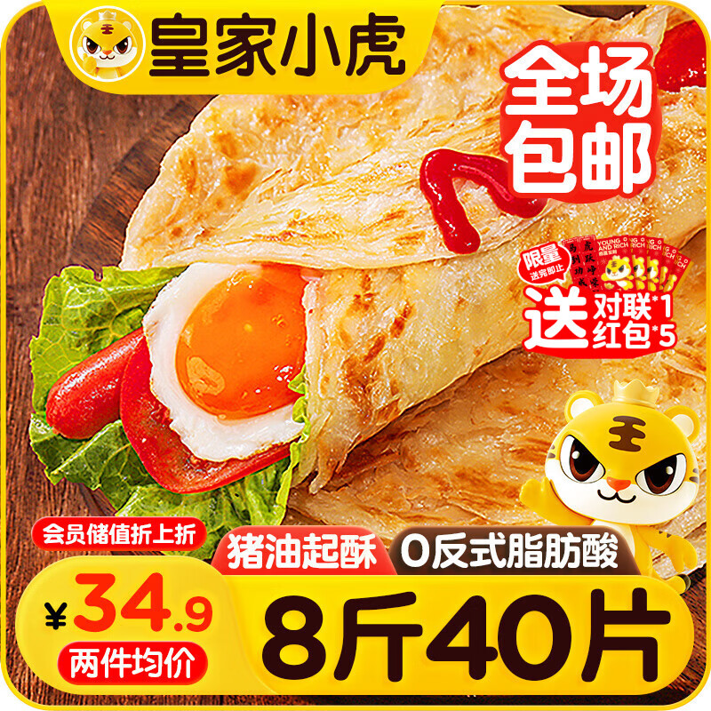 皇家小虎手抓饼40片/8斤 儿童学生早餐半成品原味煎饼家庭装批发 源头直发