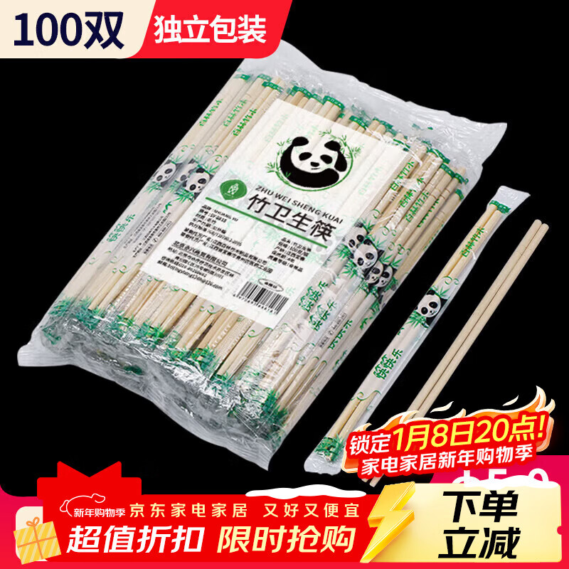 SHUANG YU一次性筷子100双独立包装家用野餐卫生竹筷 打包方便筷餐具用品