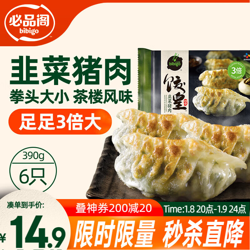 必品阁(bibigo)饺皇 韭菜猪肉390g/包 单只65g大煎饺 广式早餐大饺子 煎饺锅贴